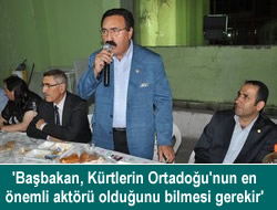 Hakkari Belediyesi tarafından verilen iftar yemeğinde konuşan BDP Hakkari Milletvekili Esat Canan, Başbakan Erdoğan'ın Kürtlerin bütün alanlardaki kazanımlarına göz diktiğini belirterek, "Başbakan Kürtlerin Ortadoğu'nun en önemli aktörü olduğunu bilmesi ve buna göre bir politika belirlemesine ihtiyaç vardır" dedi.