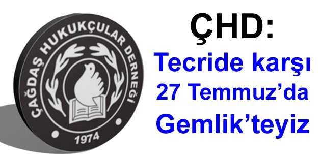 ÇHD: Tecride karşı 27 Temmuz’da Gemlik’teyiz