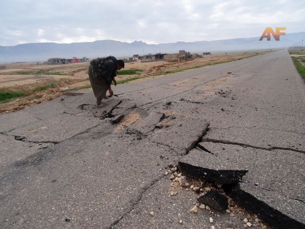 Bir süre Recm-el Ebid köyünde soluklanıyoruz. Bu çevrede artık HPG gerillaları alan kontrolü yapıyorlar. Taze demlenmiş bir bardak gerilla çayı içip kadim ibadetgâh Şengal dağlarına doğru yeniden yola koyuluyoruz. Arabadan çevreye bakıyorum. Bir hüzün kaplıyor içimi Êzîdî köylerinde bulunan birçok ev DAİŞ çeteleri tarafından patlatılmış ve yıkılmış. Daha önce buralarda on binlerce insanın yaşadığını söylemek için bin şahit gerek. Her yer harabeye dönmüş, insanlık düşmanı DAİŞ çeteleri nereye girerse orada insanlık adına bir şey bırakmamışlar. Her girdikleri yerde yıkıntılardan bir utanç abidesi bırakmışlar. Asfalt yollarda deprem sonrasını andıran derin çatlaklar ve kırıklar var Şengal dağına ulaşan birçok yol ya patlatılmış ya da patlatılmaya çalışılmış bunları da fotoğraflıyoruz.