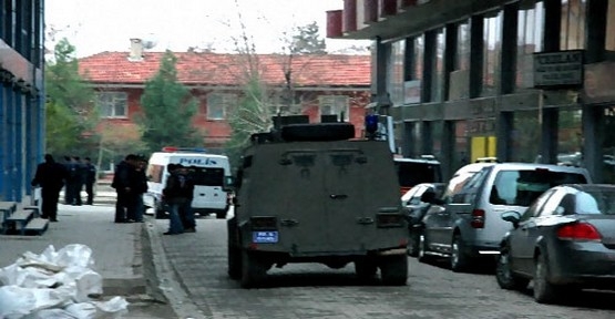 Zırhlı araç ve çok sayıda polis tarafından belediye binası adeta kuşatılırken, belediye binasında aramalar devam ediyor. / Diha
