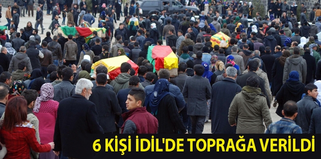 İdil Devlet Hastanesi'nden alınan 6 yurttaşın cenazesi önce ambulanslarla İdil Belediyesi önüne getirildi. Aralarında HDP milletvekilleri Besime Konca ve Mehmet Ali Adıyaman'ın da bulunduğu binlerce kişi tarafından omuzlanan cenazeler "Şehit namirin, "Be ji berxwedana Cizîrê" sloganları ile Şeyh Hasan Mezarlığı'nda toprağa verildi.
