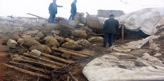 Van’ın Gürpınar ilçesindeki depremde hasar gören ahırın çökmesi sonucu küçükbaş 70 hayvan telef oldu.