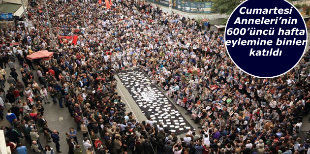 İstiklal Caddesi’ne serilen siyah bez üzerine kayıp yakınlarının resimleri ve karanfiller bırakılırken, “600 hafta” yazıldı. Meydanda bulunan binanın duvarına ise, üzerinde “Cumartesi Anneleri 600 haftadır aynı yerde” yazılı dev pankart asıldı.