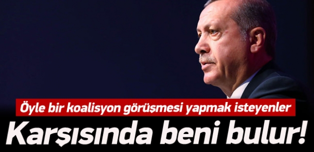 Cumhurbaşkanı Erdoğan, "Koalisyon görüşmelerini daha başlamadan sulandırmaya, kendi sorumluluğunu bırakıp başka partilere akıl vermeye kimsenin hakkı yoktur. Hele hele Cumhurbaşkanlığı makamı ve Cumhurbaşkanlığı Külliyesi üzerinden bu meseleyi tartışmak, sorumluluktan kaçmanın en sakil şeklidir" dedi.