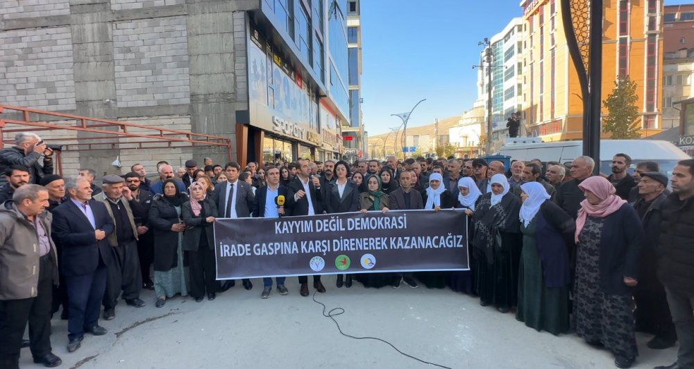 Yürüyüşün ardından kent merkezinde yapılan açıklamada konuşan Bayındır, Gever halkının bunca zulme asla boyun eğmediğini belirterek, “Halkımız 5 gündür bu zulme karşı direniyor. Kürtler ve dostları bu irade gaspına karşı sokaktadır. Kürt halkının iradesinin gasp edilmesini halkımız kabul etmiyor ve etmeyecektir. Bu zülümkar bu politikasıyla Kürt halkının mücadelesini gerileteceğini düşünüyorlar. Hedefiniz Kürt halkına diz çöktürmek ise evinize gidin. Çünkü bu halka asla diz çöktüremeyeceksiniz. İktidar, tüm ezilenlere düşmanlık ediyor. Esenyurt’ta da bunu bir kez daha gördük. Bu iktidar tüm halklara zulüm ediyor. Kürt halkının iradesine saldırdıkça Kürt halkı çok daha güçlü cevap verecek. Kürt halkı sizin zulmünüze boyun eğmeyecek” dedi.