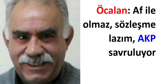 Demokrasi güçlerine de barış sürecine sahiplenme ve AKP’ye baskı yapma çağrısı yapan Öcalan: “Bu, afla çözülecek sorun değildir. Demokratik bir sözleşme yapmak lazım. Bunun bir hakem kurulu olmalı, izleyicisi olmalı, yaptırımı olmalı.”