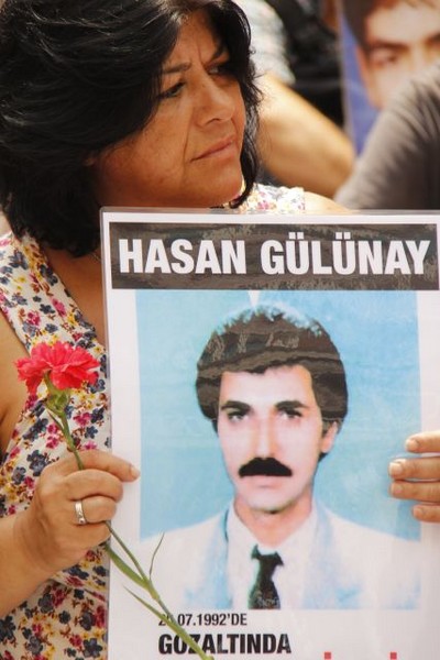"Halkımız bir gün bunların hesabını soracak" diye konuşmasına başlayan Birsen Gülünay, "Bize büyük bir acı yaşattılar. Çocuklarımla birlikte birbirimize sarılarak acılarımızla baş etmeye çalıştık. Bize çok büyük bir travma yaşattılar" dedi. Artık eşinin gömüldüğü yerin açıklanacağına inanmadığını söyleyen Birsen Gülünay, "Ancak bu meydanı terk etmeyeceğiz. Burada devlet bizi her gördüğünde yaptığı katliamları hatırlayacak. Herkes kayıpları hatırlayacak" diye konuştu.