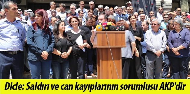 AKP'nin DAİŞ'e karşı olan tavrının herkesçe bilindiğine dikkat çeken Dicle, katliamın sorumlusunun AKP hükümeti olduğunu dile getirerek, "İŞID çetelerinin Türkiye'den Rojava'ya rahatlıkla giriş çıkış yaptıkları, yaralıların sınır illerinde tedavi edildiği ve IŞİD çetelerinin Türk askeriyle boy boy fotoğrafları sıklıkla basında yer almaktadır. Ayrıca Adana'da savcılık tarafından durdurulan MİT TIR'larında yapılan arama ile Suriye'ye insani yardım adı altında silah gönderildiği de ayyuka çıkmıştır. Gerçekleşen bunca planlı saldırı karşısında vatandaşın can güvenliğini sağlamakla yükümlü hükümet tarafından, benzer saldırıların olabileceği ön görülmesine rağmen gerekli tedbirler alınmamıştır. Bu nedenle söz konusu saldırının ve yaşanan can kayıplarının sorumlusu hükümettir. AKP hükümeti öncelikle DAİŞ'e karşı tavrını netleştirmeli ve bunu deklere etmelidir" ifadesinde bulundu.