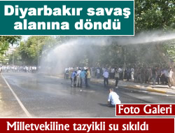 Diyarbakır'da 5 kolda yürüyüşe geçen binlerce kişiye, polis, tazyikli su ve gaz bombalarıyla müdahale etti.