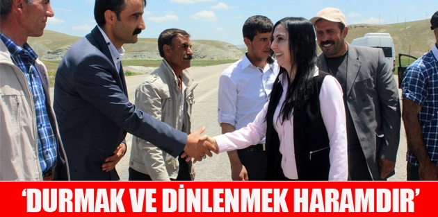 Yüksekdağ şunları belirtti: "7 Haziran seçimlerinde hep beraber yaptığımız çalışmalar sonucu bu zaferi elde ettik. 7 Haziran zaferi hem bir Türkiye, Kürdistan hem de bir Ortadoğu, Mezopotamya zaferidir. Barış ve kardeşliğin mimarı Sayın Abdullah Öcalan'a Van Saray'dan bir kez daha selam olsun. Sayın Öcalan, HDP projesine bu kadar inanmasaydı eğer; o HDP projesinin arkasında bu kadar durmasaydı ve bizden çok kazanacağımıza güvenmeseydi bizler bu yola çıkmazdık. Sayın Öcalan bizden önce bu yolları bu günleri biz görmeden o görmüştür. Halkımızı bu büyük zaferden sonra iktidara taşıyarak halk iktidarı kurarak bu görevi bu sözü yerine getireceğiz. Bugün bu büyük zaferimizin intikamı için tecrit altında tutulan Sayın Öcalan' a özgürlüğün kapılarını hep birlikte açarak borcumuzu görevimizi yerine getireceğiz. Bütün devrimci tutsaklarımızla birlikte Sayın Öcalan'ın özgürlüğünün sağlanması için biz bıkmadan usanmadan borcumuzun ve görevimizin ikinci taksitinin, ikinci etabını yerine getireceğiz. Rojava'da yeni ve büyük insanlık yaşamını bize armağan eden şehitlerimize borçluyuz. Büyük mücadeleyi ve şanlı davayı iktidara taşıyana kadar bizlere durmak ve dinlenmek haramdır.”