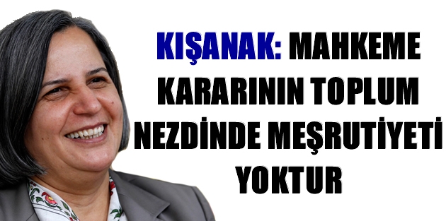 Türkiye'nin ilk başta hukuk devleti mi, yoksa kanun devleti mi olacağı yönünde karar vermesi gerektiğini kaydeden Kışanak, "Kanun devletimi olacak hukuk devletimi olacak. Kanun devletinde kağıt üzerinde ne yazıyorsa o mutlak doğrudur. Çağdaş hukuk devletleri bunu reddediyor. Biz son derece anti demokratik, hukuk dışı bir kararla karşı karşıyayız. Adaletsizlik üzerine kurulu bir hukuk olamaz. Bu kararın toplum nezdinde meşrutiyeti yoktur. Toplumun nezdinde meşrutiyeti olan halkın oy verdiği eş başkanlık sistemidir. Eşitliksiz ve adaletsiz bir hukuk olamaz" dedi.