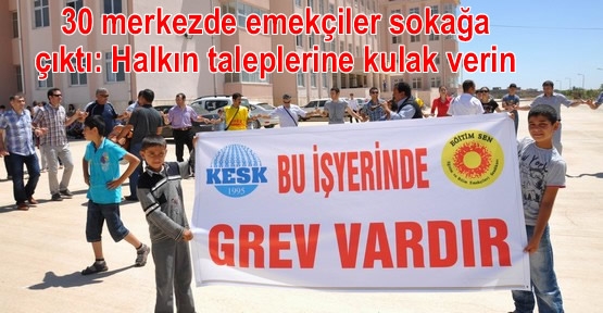 Kamu Emekçileri Sendikaları Konfederasyonu'nun (KESK) "iş ve ücret güvencesi" talebiyle başlattığı grev kapsamında Doğubayazıt, Bulanık, Adana, Mersin, Tarsus, Silopi, Ergani, Derik, Batman, Dersim, Siirt, Ceylanpınar, Şırnak, Viranşehir, Antep, Adıyaman, Diyarbakır, Mazıdağı, Elazığ, Mardin, Kızıltepe, İdil, Siverek, Van, Erciş, Iğdır, Hakkari, Çukurca, Kars ve Nusaybin'de onbinlerce kamu emekçisi iş bırakarak, eylem yaptı.
