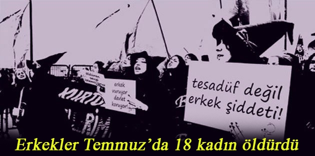 Erkekler Temmuz’da 18 kadın ve bir erkeği (öldürülen kadının babası) öldürdü.