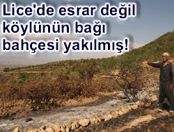 Diyarbakır'ın Lice İlçesi kırsalında geçtiğimiz gün Diyarbakır Valisi'nin daveti ile İstanbul'dan gelen muhabirler eşliğinde "esrar operasyonu" düzenlendiği açıklanmıştı. Yöre halkı, Lice'de "PKK'nin esrar tarlası" şeklinde yapılan haberlerin yalan olduğunu ilginç anılar ve bilgilerle DİHA'ya anlatmış ve PKK'nin esrara karşı olduğunu ve ekilmemesi konusunda sık sık yöredekilere uyarıda bulunduğunu kaydederek, bir iki tarlada az miktar yeşil esrarın yakıldığını, kuru esrarın ise askerlerce kamyonlara konulup götürüldüğünü öne sürmüştü. Söz konusu operasyonda bir ilginç ayrıntı daha ortaya çıktı. Operasyonda esrar yerine çevre köylerde bulunan köylülerin bağ ve bahçelerinin yakıldığı ortaya çıktı.