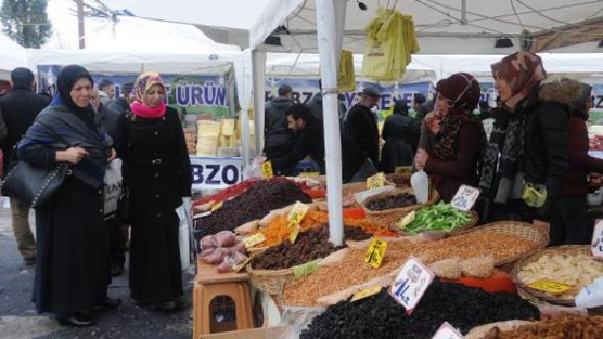 VAN'da, Türkiye'nin değişik kentlerinden gelip, ürün pazarı kuran esnaf, soğuk havaya rağmen yörelerine ait ürünleri tanıtarak, satış yapıyor. Vanlıların yoğun ilgi gösterdiği pazarda yöresel ürünlerini satanlar, kent sakinlerinin ilgisinden memnun olduklarını söyledi.