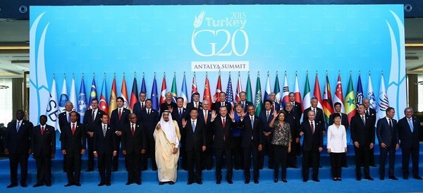 Antalya'da düzenlenen G-20 Zirvesi'ne katılan devlet ve hükümet başkanları, toplu fotoğraf çektirdi.