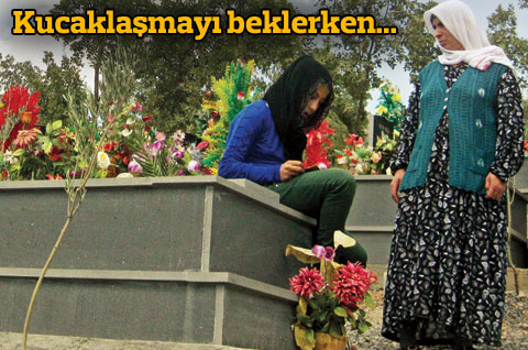Her geldiklerinde önce gecenin uçurduğu plastik çiçekleri üfleyip yerlerine diziyorlar, sonra taşları öpüp adalet için dua ediyorlar.