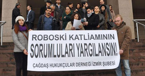 İzmir Adliyesi önündeki basın açıklamasına ÇHD üyesi yaklaşık 30 avukat katıldı. Ellerinde 'Roboski katliamının sorumluları yargılansın' yazılı döviz taşıyan grup adına konuşan ÇHD İzmir Şubesi Başkanı Şule Arslan Hızal, üç yıl önce Uludere'de 34 yoksul insanın, devlet tarafından bombalanarak katledildiğini söyledi.