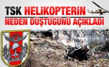 Genelkurmay Başkanlığı, Cumartesi günü Siirt’in Pervari ilçesi Doğanca beldesi Hasan Tepe mevkiinde düşen ve 17 askerin yaşamını yitirdiği helikoptere ilişkin internet sitesi aracılığıyla açıklama yaptı. Açıklamada, "kırıma" uğrayan helikoptere yönelik dışarıdan herhangi bir saldırının olmadığı savunularak, helikopterin düşme nedenine ilişkin ise bir şey belirtilmedi.