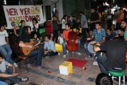 Taksim Gezi Parkı direnişine destek eylemlerinin adresi olan Yenişehir'in Pozcu semtinde bulunan Barış Meydanı'nda akşam saatlerinde biraraya gelen yurttaşlar, eylemlerine gece geç saatlere kadar devam etti. Gruplar taşıdıkları renkli dövizlerle dikkat çekerken, sık sık hükümet aleyhine slogan attı. Uzun bir süre sadece Barış Meydanı'nın elektriklerin kesilmesi dikkat çekerken, gruplar uzun süre Kürtçe, Ermenice, Türkçe ezgiler eşliğinde halay çekti ve havai fişek gösterisi yaptı. Zaman zaman Adnan Menderes Bulvarı'nı trafiğe kapatan eylemciler gece geç saatlere protestolarına devam etti.
