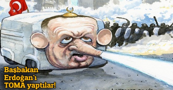 Guardian gazetesi karikatüristi Steve Bell'in, Başbakan Tayyip Erdoğan'ı TOMA'ya benzettiği bir karikatür yayınladı.
