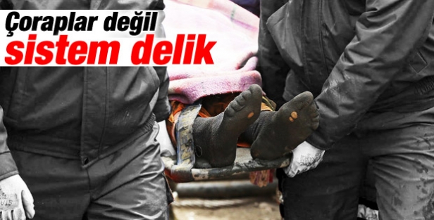 Zaman geçtikçe ümitler tükendi, ümitler tükendikçe sinirler gerildi. O sırada İzmir İtfaiyesi'ne bağlı ekiplerin maden ocağından çıkardığı bir cansız beden göze çarptı, çorapları delik bir cansız beden..