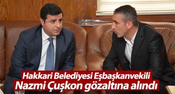 HAKKARİ - Edinilen bilgiye göre, Hakkari Belediye Başkanvekili Nazmi Çuşkon, bu sabah Kıran Mahallesi'nde gözaltına alındı. Kentte 14 Ağustos 2015 tarihinde yapılan 'öz yönetim' açıklamasına katıldığı gerekçesiyle gözaltına alınan Çuşkon, İl Emniyet Müdürlüğü'ne götürüldü.