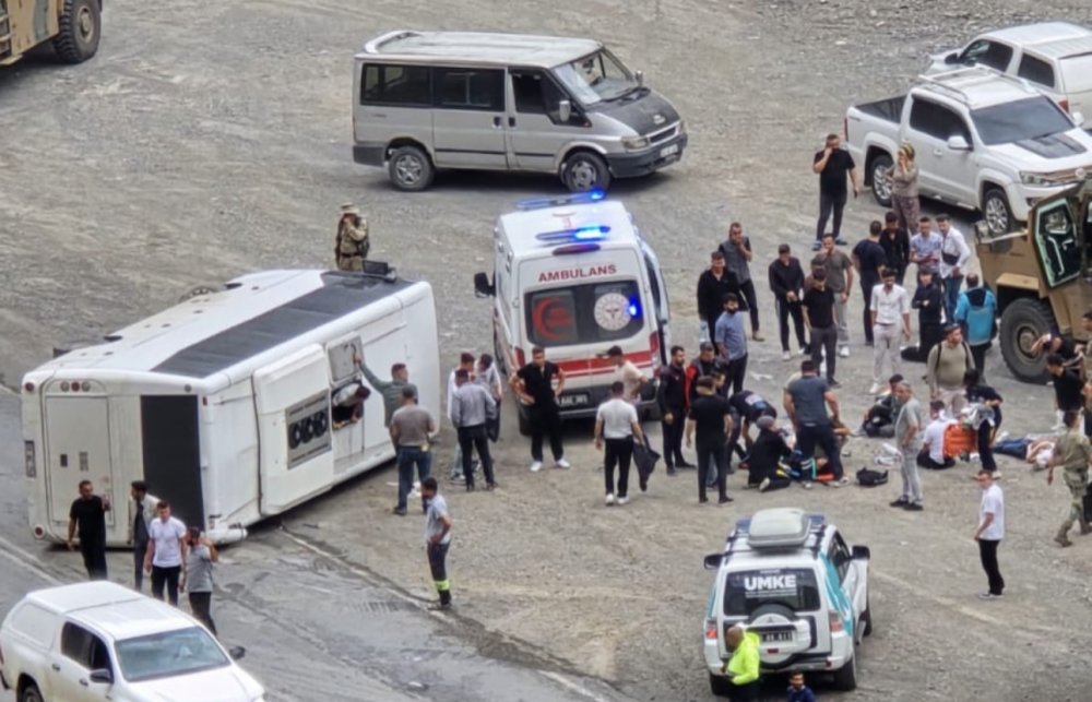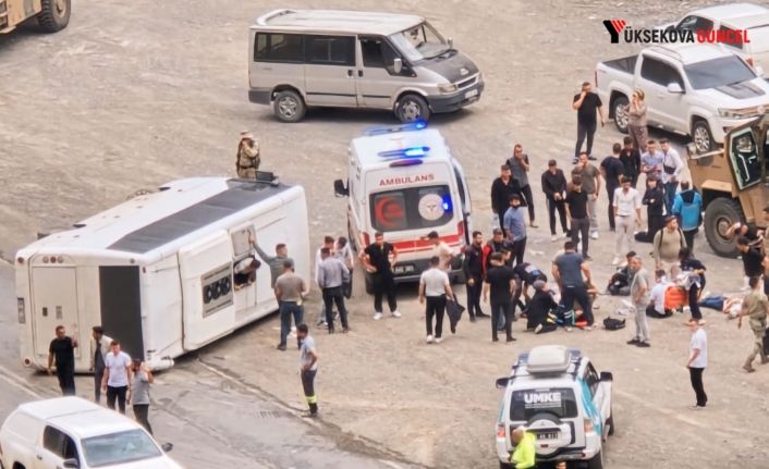 Çukurca ilçesi yolu üzerindeki Kunebız mevkiinde, etkili olan yağışların ardından kayganlaşan yolda bir askeri yarım otobüs direksiyon hakimiyetinin kaybedilmesi sonucu devrildi.