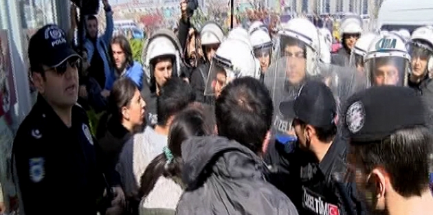 Adliye önüne gelen yaklaşık 20 kişilik bir grup ise içeri girmek istedi. Polis, ailenin yakını olmadıkları gerekçesiyle grubun içeri girmesine izin vermedi. Ancak eylemciler polise direnince müdahaleyle karşılaştı. Göstericiler daha sonra adliye önünde oturma eylemi yaptı. Güvenlik güçleri ise “Dağılmazsanız müdahalede bulunacağız” diyerek eylemcileri uyardı. Uyarıları dikkate almayan eylemciler gözaltına alındı.İha
