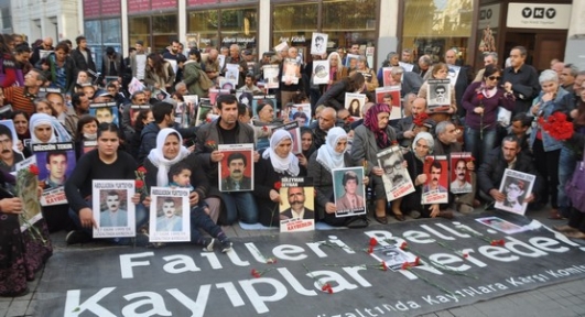 "Faili meçhul" cinayetlere kurban giden yakınlarının faillerinin bulunması ve faillerin yargılanması talebiyle adalet arayışlarını sürdüren Cumartesi Anneleri, oturma eylemlerinin 452'inci haftasında da Galatasaray Lisesi önünde bir araya geldi. "Failler belli kayıplar nerede" pankartı açan anneler, oturma eylemlerinde kaybedilen yakınlarına ait fotoğraf ve kırmızı karanfiller taşıdı. Eyleme Ankara Gezi direnişi eylemlerinde gözünü kaybeden Muharrem Dağsüren de katıldı. 12 Eylül askeri darbesinin ilk gözaltı kayıplarından olan Hayrettin Eren'in akıbetinin sorulduğu eylemde ilk olarak gözaltında kaybedilen Kenan Bilgin'in kardeşi İrfan Bilgin konuştu. Bilgin, "12 Eylül şak şakçıları, darbenin talimatını verenler bugün milletvekili ve bakandır. Onlardan kayıplarımızın kemiklerini istemek abes geliyor" dedi. Roboski'de Kürt köylülerinin katledilmesinin ve Gezi direnişinin katliama dönüşmesinin sorumlusunun Başbakan Erdoğan olduğunu dile getiren Bilgin, "Biz derdimizi onlara değil, insanlara anlatmak istiyoruz. Çağrımız Tayyip Erdoğan'a değildir" diye belirtti.