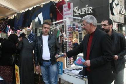 Açıklamadan sonra HDK bileşenleri Mersin Hastane Caddesi'nde bulunan esnaf ve halka Newroz'a çağrı bildirilerini dağıttı. / Diha