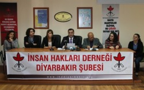 İHD Diyarbakır Şubesi, Doğu ve Güneydoğu Anadolu Bölgesi 2012 yılı ilk 9 aylık Hak İhlalleri Raporu'nu düzenlediği bir basın toplantısıyla kamuoyuna duyurdu. Şube binasında düzenlenen basın toplantısına İHD MYK Üyesi ve Doğu-Güneydoğu Bölge Temsilcisi Şevket Akdemir, İHD Diyarbakır Şube Başkanı Raci Bilici ve şube yöneticileri katıldı.