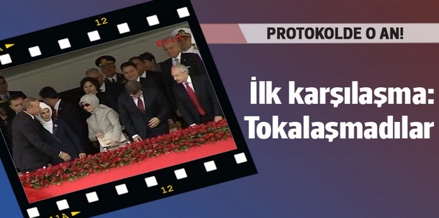 Resmi geçit töreninin ardından gözler protokol tribününde bulunan Cumhurbaşkanı Recep Tayyip Erdoğan ile CHP Genel Başkanı Kemal Kılıçdaroğlu'na çevrildi. Erdoğan'ın tokalaşmak için hamle yaptığı Kılıçdaroğlu, karşılık vermeyince cumhurbaşkanı da ani bir kararla yerine oturdu.