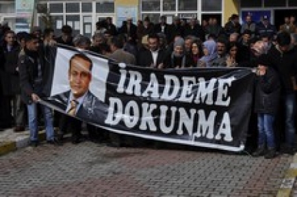 BDP'li seçilmiş ve siyasetçilerin tutuklanmasının protesto edildiği "Kara Perşembe" eylemi, bu hafta da Tüm Bel- Sen öncülüğünde yapıldı. Van Belediyesi önünde yapılan eyleme, Tüm Bel-Sen, DİSK, Genel-İş, il genel meclis üyeleri ve çok sayıda yurttaş katıldı. "Halkın iradesi tutsak edilemez, iradene sahip çık, haykır!" pankartı açılan eylemde Tüm Bel-Sen Van Şubesi Yönetim Kurulu Üyesi Şükrü Kaçıcı konuştu. Kaçıcı Van'da yapılan "KCK" operasyonlarının 8'inci ayına girdiğini belirterek, "Farklı bir şey söylersem başıma ne gelir sorusuyla başlayan bu cümle artık hayatımızın bir parçası haline gelmiştir. Ancak iyi bilinmelidir ki susmak, yok olmak demektir. Bizler bu yok olma suçuna ortak olmayacağız. Çözüm yerine çözümsüzlük dayatılmıştır" dedi. Kaçıcı, PKK Lideri Abdullah Öcalan ile yapılan görüşmelerin olumlu olduğunu belirterek; CHP İzmir Milletvekili Birgül Ayman Güler'in yaptığı ırkçı açıklamalara tepki gösterdi. Bu söylemlerin faşizan yaklaşım olduğunun altını çizen Kaçıcı, yurttaşların bu konuda duyarlı olması gerektiği uyarısını yaptı. Daha sonra 5 dakikalık oturma eylemi yapıldı.
