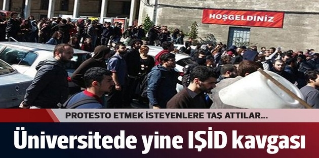 İstanbul Üniversitesi'nde bir grup öğrenci, IŞİD'i protesto etmek için Fen Edebiyat Fakültesi'nin bahçesinde toplandı. Bu sırada, fakültenin dışında bulunan başka bir grupla eylem yapan öğrenciler arasında gerginlik yaşandı. Gerginlik yaşanan anları, bir öğrenci cep telefonuyla görüntüledi. Görüntülerde fakültenin bahçesinde toplanıp slogan atan öğrenciler görünüyor. Bu sırada, gerginlik başlıyor ve bahçede bulunan öğrenciler dışarıya doğru taş ve şişeler atıyor. Ardından, fakülte bahçesinden havai fişek sesleri geliyor.