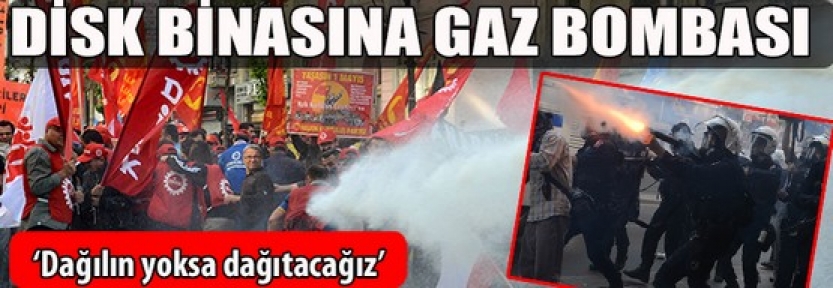 Polis, Şişli'den Taksim Meydanı'na yürüyüşe geçen ve dağılma uyarılarını dikkate almayan DİSK kortejine, tazyikli su ve biber gazıyla müdahale etti.
