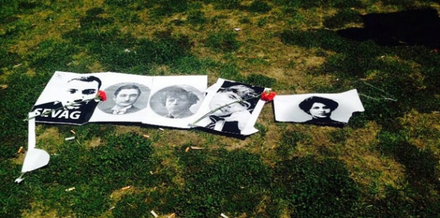 Öğrenciler “Hrant’la, Sevag’la, soykırımla yüzleş” pankartı ve öldürülen Ermeni aydınlarının fotoğraflarını asarak oturma eylemi başlattı.