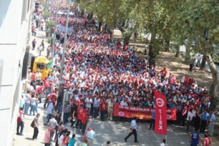 DİSK Ege Bölge Temsilciliği, KESK İzmir Şubeler Platformu, TMMOB İzmir Koordinasyon Kurulu, Türk Tabipler Birliği (TTB), Türk Diş Hekimler Birliği'nin de aralarında olduğu çok sayıda emek ve meslek örgütü, Taksim Gezi Parkı direnişçilerine yönelik polis şiddetini protesto etmek amacıyla Bornova Meydanı'nda biraraya gelerek, Konak Meydanı'na yürüyüş düzenledi. "Her yer Taksim her yer direniş, Taksim'de yaşanan polis şiddetini kınıyoruz" pankartını açan on binlerce emekçi, sık sık "Faşizme karşı omuz omuza", "Direne direne kazanacağız", "Hükümet istifa" sloganları attı. Konak Meydanı'nda Taksim olaylarında polis müdahalesiyle yaşamını yitirilenler adına saygı duruşuyla başlayan eylemde, polisin yoğun önlemi dikkat çekti. Her örgütün kendi flamalarıyla katıldığı eylemde konuşan KESK İzmir Şubeler Platformu Dönem Sözcüsü İsmail Akyol, "Taksim Gezi Parkı'nın ranta kurban edilmesine karşı gelişen yurttaş duyarlılığını polis terörü ile bastırılmaya kalkışan AKP iktidarı, Türkiye halkının vicdanının, hak ve adalet arayışının güçlü duvarına çarptı" dedi.