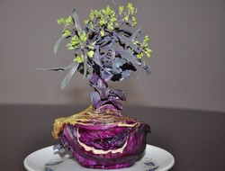 Yarım kesilmiş bir kara lahananın kendi küllerinden doğan Anka Kuşu misali yeniden filizlenerek çiçek açması dikkat çekiyor.