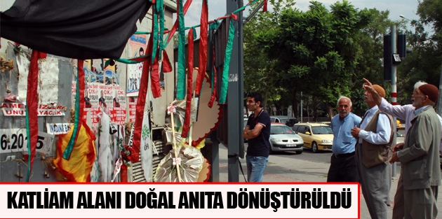 Yaşanan patlamada yaşamını yitirenleri anmak isteyenlerin akın ettiği patlama alanı, trafoya asılan ayakkabı, gözlük, siyah bez ve katliamı kınayan dövizlerle doğal bir anıt haline geldi. Kayıpları anmak için çiçeklerle donatılan patlama alanına gelen yurttaşlar, patlamada yaralanan ve yaşamını yitiren yurttaşlara ait kıyafet ve eşyaları da bırakarak, katliam girişimin unutulmaması için çaba sarf ediyor.