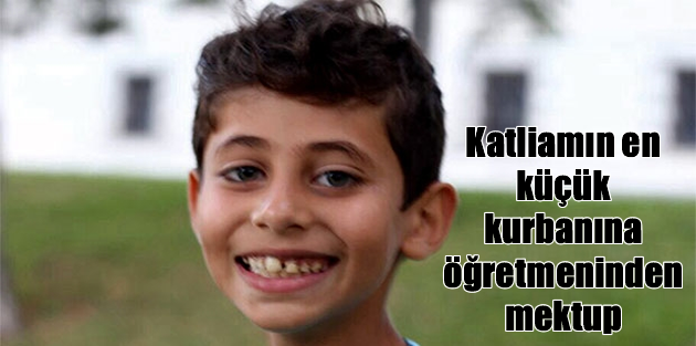 Ben bu dersi seni anmadan nasıl veririm? Seni, barış sözünü kullanmadan anlatırsam eksik olur, barış dersem peki arkadaşların sormaz mı 'barış ölüme eş mi öğretmenim?' diye. Küçücük bedenin ağzı salyalı katillerin hangi egolarını tatmin etti acaba? Güzel gözlü, güzel yürekli oğlum sana söz, oturmaktan hoşlandığın o cam kenarındaki yerin hep senin olacak. Barışın güvercini sensin artık benim için...