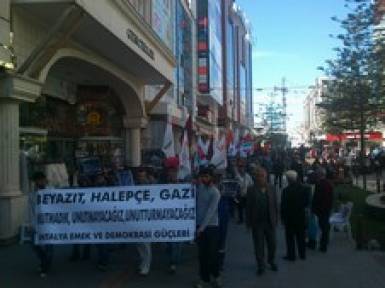 Antalya Emek ve Demokrasi Güçleri Birliği üyeleri, Halepçe, Gazi ve Beyazıt katliamlarını yaptıkları yürüyüş ve açıklama ile protesto etti. Halkbankası önünde başlayan yürüyüşe; HDK bileşenlerinin yanı sıra ÖDP, KESK, Halkevleri, Pir Sultan Abdal Derneği, çok sayıda yurttaş katıldı. Attalos Heykeli'ne kadar yapılan yürüyüşün ardından kitle adına yapılan açıklamada, katliamlarda yaşamlarını yitirenler anılarak, katliamcı zihniyet lanetlendi.