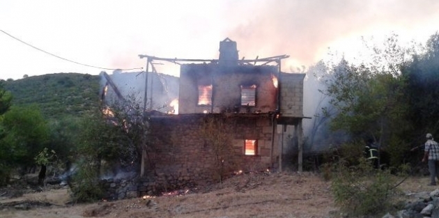 Yanan kerpiç ev bir taraftan yanarken bir taraftan da yıkıldı. Can ve mal kaybının yaşanmadığı yangınla ilgili soruşturma başlatıldı./İha