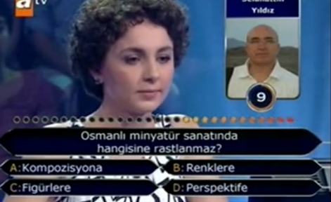 Kenan Işık’ın sunduğu ‘Kim Milyoner Olmak İster’ yarışmasında Osmanlı minyatür sanatında hangisine rastlanmaz?” sorusu yarışmacıyı güç durumda bıraktı.