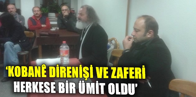 Avukat ve insan hakları savunucusu Erdal Doğan, Rojava’nın direnişi ve Kobanê’nin zaferiyle, bütün hesaplarını Kobanê’nin düşmesi üzerine kuran AKP hükümetinin büyük bir hayal kırıklığı yaşadığını söyleyerek konuşmasına başladı.