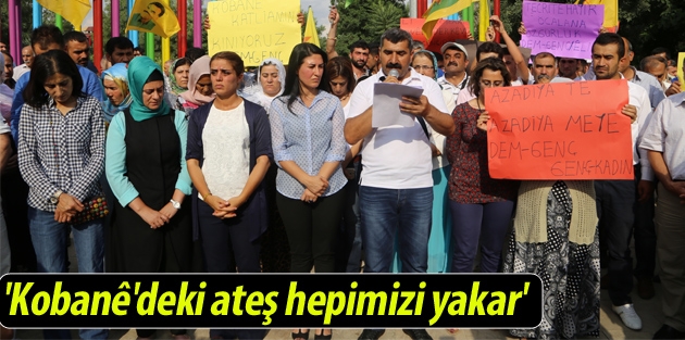 "Bijî berxwedana Kobanê" ve "Katil İŞİD işbirlikçi AKP" sloganları atılan açıklamayı yapan DBP Mardin İl Eşbaşkanı Ömer Öcalan, Kobanê'ye yönelik gerçekleştirilen saldırıyı nefretle kınadıklarını belirterek, saldırının ne insanlığa ne Müslümanlığa ne de hukukta hiçbir yerinin olmadığını söyledi. Barbar saldırıların son bulmasını temenni ettiklerini sözlerine ekleyerek, "Bu saldırılar Ortadoğu ve Türkiye'de kimlere hizmet ettiğini, kimlerin bunları organize ettiğini biliyoruz. Bu katliamın arkasında AKP siyaseti ve AKP hükümeti vardır. Bundan artık kuşku duymuyoruz. Eğer sizlerin bu katliamlarda parmağınız yoksa bu provokasyonları bir an önce açıklarsınız. Artık Tayyip Erdoğan ve AKP hükümeti Kürt ve Rojava düşmanlığını bırakmalıdır" dedi.