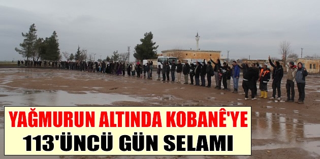 DAİŞ çetelerinin Kobanê'ye yönelik 15 Eylül'de başlattığı işgal girişimine karşı YPG/YPJ öncülüğündeki tarihi direniş 113'üncü gününe girerken, Suruç'un Mehser ve Miseynter köylerinde başlatılan sınır nöbeti eylemi de tüm coşkusuyla sürüyor. Yağışlı ve soğuk havaya rağmen Misenyter ve Mehser köylerinde bir araya gelen yüzlerce kişi oluşturdukları insan zinciri ile yüzlerini Kobanê'ye dönerek, Kobanê direnişini selamladı. PKK Lideri Abdullah Öcalan'ın posterleri ile YPG bayraklarının açıldığı insan zinciri eyleminde, Kobanê'de yaşamını yitirenler anısına bir dakikalık saygı duruşunda bulunan sınır nöbetçileri, "Çerxa Şoreşê" marşını okudu.