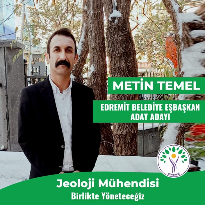 Van'ın Edremit ilçesinde Jeoloji Mühendisi Metin Temel DEM Parti aday adaylık başvurusunu yaptı. 'Birlikte Yöneteceğiz' şiarıyla yola çıkan Temel, Görev verilmesi durumunda halkımızla beraber şeffaf bir belediyecilik anlayışıyla hizmet etmeye hazır olduklarını belirtti.