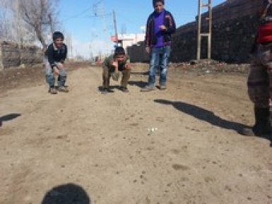 Ağrı’nın Doğubayazıt ilçesinde yoğun kar yağışı ve soğuk havanın hakim olduğu günlerin ardından güneşin yüzünü göstermesiyle çocuklar kendilerini sokağa attı. Güneşli havayı fırsat bilen çocuklar misket oynayarak zaman geçiriyor.DİHA