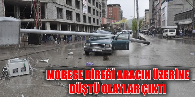 Cengiz Topel Caddesi üzerinde bulunan bir mobesse direği rüzgarın etkisiyle yoldan geçen Murat Baysal yönetimindeki